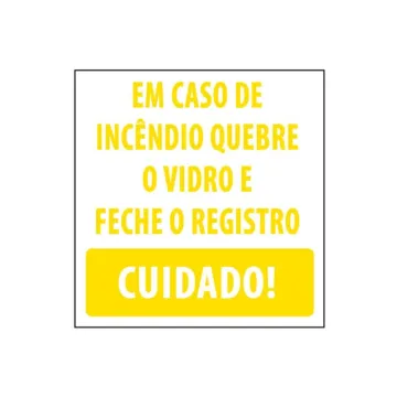 Adesivo "Em Caso de Incêndio Quebre o Vidro e Feche o Registro. Cuidado!" 20x20cm