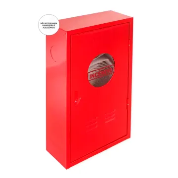 Abrigo metálico para mangueira de incêndio no modelo de sobrepor, desenvolvido para instalação em superfície de parede, ideal para locais onde não há possibilidade de embutimento. Possui visor acrílico para rápida visualização do conteúdo, facilitando inspeções e garantindo acesso rápido em situações de emergência.