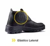 Elástico lateral é fácil de calçar, confortável e ajusta bem ao pé, mantendo a proteção e resistência.