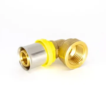 Joelho de compressão com rosca fêmea PEX multicamadas para gás - 20mm x 1/2 pol.