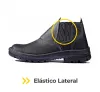 Confeccionada em couro curtido ao cromo, esta botina possui fechamento com elástico nas laterais, que facilita o calce e proporciona ótimo ajuste aos pés. A biqueira em PVC tipo sapatão oferece proteção contra impactos leves e compressão, sendo uma alternativa leve e funcional para atividades que não exigem biqueiras metálicas.
