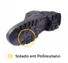 O solado em PVC injetado direto no cabedal garante ótima aderência, resistência a abrasão e maior durabilidade, ideal para uso prolongado em diferentes tipos de pisos.