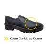 - Couro curtido ao cromo, que garante resistência e conforto durante o uso prolongado.