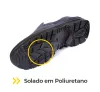- Solado em poliuretano monodensidade: injetado diretamente no cabedal para ótima aderência.