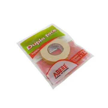 Fita dupla face com dorso de espuma de polietileno branco de células fechadas com adesivo acrílico e resina. Espuma de alta performance com polímero sintético associada ao adesivo de alto tack (alto grau de aderência).