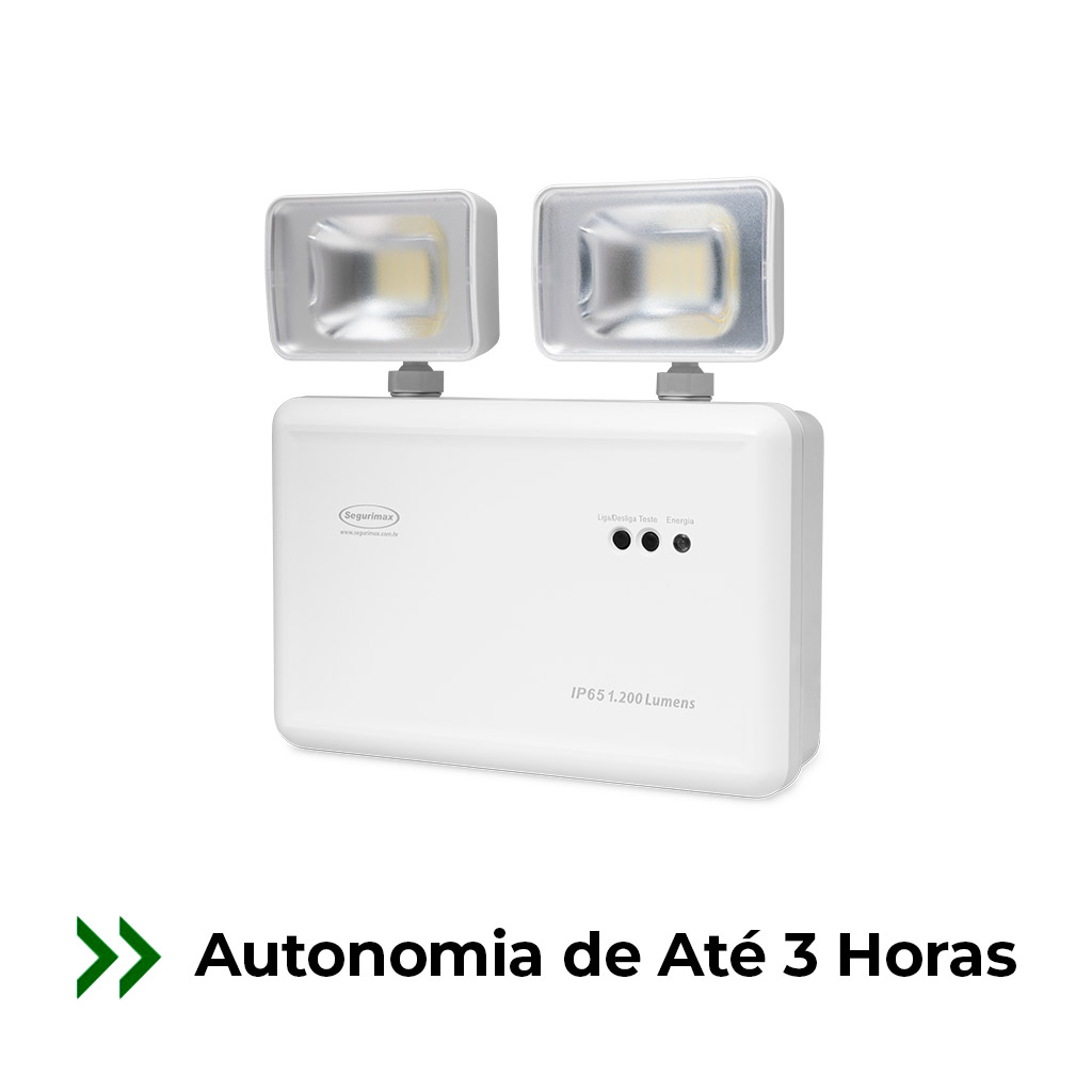 Bloco de iluminação de emergência autônoma LED 2 faróis 1200 lúmens IP65