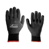 - Material em fibras sintéticas e naturais com revestimento em borracha vulcanizada na face palmar, face palmar dos dedos e ponta dos dedos.