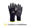 Produzida em poliamida de alta resistência com revestimento de poliuretano (PU) na palma e dedos, proporciona excelente aderência, flexibilidade e sensibilidade tátil. Seu design anatômico se ajusta perfeitamente às mãos, oferecendo liberdade de movimento e conforto durante todo o uso.