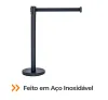 Pedestal organizador de fila preto fosco em inox com fita retrátil preta