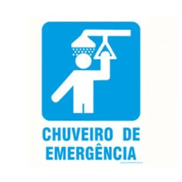 Utilizada para identificação de chuveiros de emergência em ambientes industriais e locais que necessitem de sinalização específica para segurança.