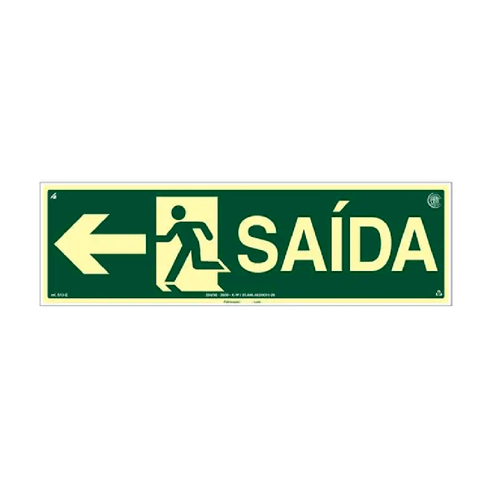 A Placa Fotoluminescente de Rota de Fuga com indicação de Saída e seta para a esquerda foi desenvolvida para garantir orientação rápida, clara e segura em situações de emergência, mesmo em locais com ausência total de iluminação. Produzida em PVC expandido de alta qualidade, apresenta excelente desempenho fotoluminescente, alcançando níveis de brilho superiores ao dobro do mínimo exigido pela ABNT NBR 13434, graças à elevada concentração de pigmento especial aplicada por processo serigráfico de alta definição.
