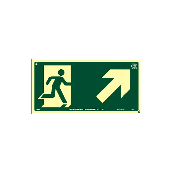 A Placa Fotoluminescente de Rota de Fuga com seta para cima à direita foi desenvolvida para oferecer orientação clara e alta visibilidade em situações de emergência ou em ambientes com ausência total de iluminação. Produzida em PVC expandido fotoluminescente de alta performance, apresenta brilho intenso e duradouro, superando os níveis mínimos exigidos pela ABNT NBR 13434-2, garantindo comunicação visual segura e eficiente ao longo das rotas de fuga.