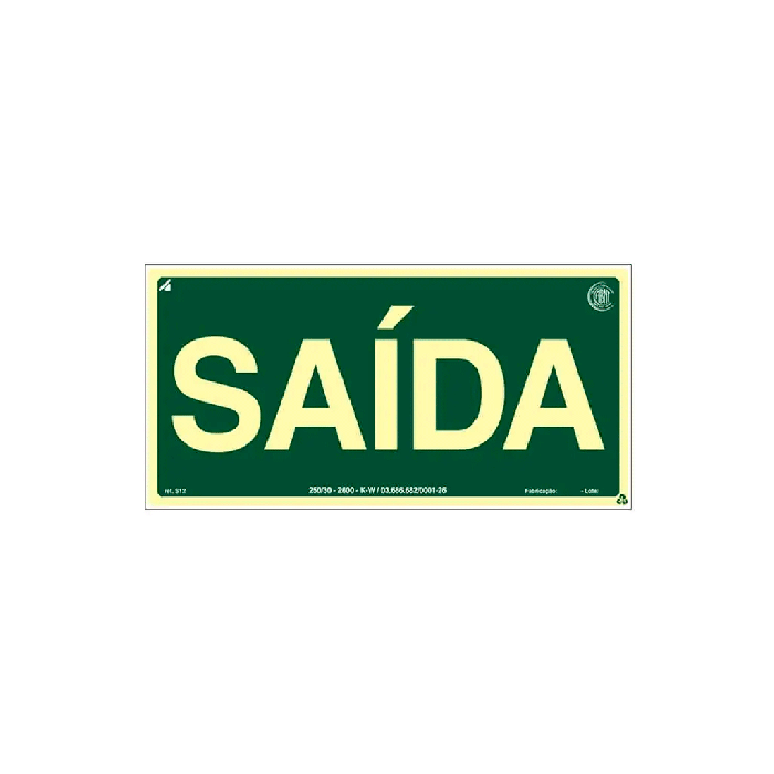 A Placa Fotoluminescente de Saída em duas faces foi desenvolvida para garantir alta visibilidade e orientação eficiente em situações de emergência, mesmo em ambientes com ausência total de iluminação. Fabricada em PVC expandido de alta qualidade, apresenta excelente desempenho fotoluminescente, superando em mais do dobro o brilho mínimo exigido pela ABNT NBR 13434, graças à elevada concentração de pigmento especial aplicado no processo serigráfico de alta definição.