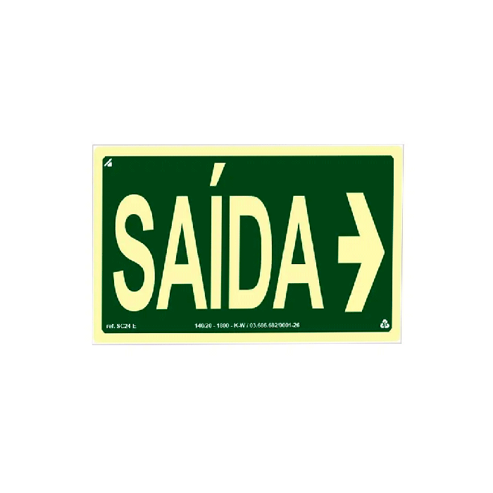 A Placa Fotoluminescente de Saída com seta lateral em duas faces foi desenvolvida para oferecer orientação clara, precisa e altamente visível em situações de emergência ou ambientes completamente escuros. Ideal para corredores, áreas de circulação e locais onde o fluxo de pessoas ocorre em ambos os sentidos, sua visualização dupla garante leitura eficiente independentemente do ângulo de aproximação. Fabricada em PVC expandido fotoluminescente de alta performance, a placa atende e supera os requisitos mínimos da ABNT NBR 13434-2, assegurando comunicação visual confiável e padronizada para rotas de evacuação.