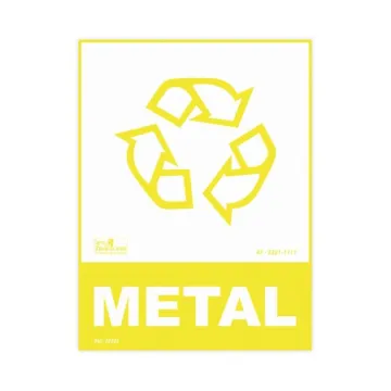 Placa em PVC com fundo branco para lixeiras de lixo reciclável com identificação "Metal".