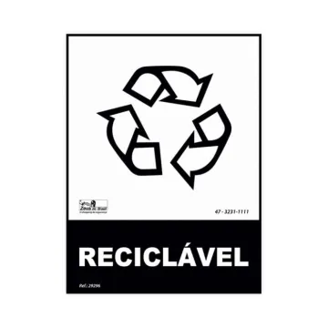 Placa em PVC com fundo branco para lixeiras de lixo reciclável com identificação "Reciclável".