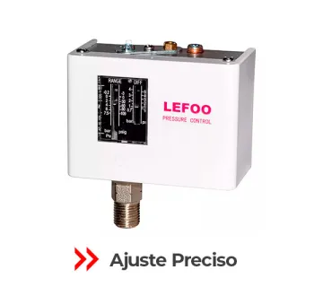 O Pressostato LF55 é uma opção confiável e econômica para controle de pressão em sistemas de bombeamento, incêndio, ar comprimido e refrigeração. Com faixa ajustável de -0,2 a 7,5 bar e diferencial de 0,7 a 4 bar, oferece controle preciso e seguro em aplicações que exigem desempenho contínuo.