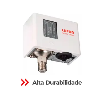 Faixa de pressão de 2 a 14 bar com diferencial regulável de 1 a 4 bar.
