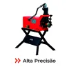 Sistema eletro-hidráulico que garante ranhuras uniformes e acabamento de qualidade.