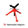 Do ponto de vista da ergonomia e da segurança do trabalho, o design portátil, compacto e leve reduz o esforço físico no transporte e no posicionamento do equipamento. Outro destaque é a operação segura via pedaleira: com o acionamento pelo pé, o operador tem controle total sobre a parada de emergência.