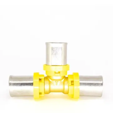 Tê de compressão PEX multicamadas para gás 16mm, com capacidade de pressão suportável de 5 bar. O sistema de multicamada flexível é uma linha diferenciada de tubos e conexões para gás (GN e GLP).