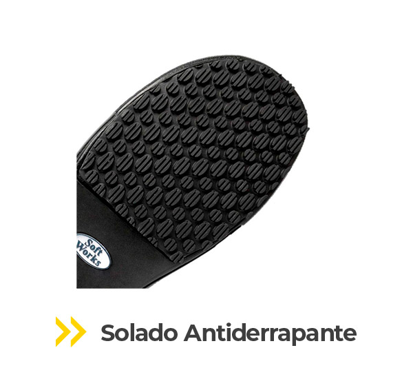 - Solado em borracha antiderrapante: Alta aderência, mesmo em superfícies molhadas ou escorregadias.
