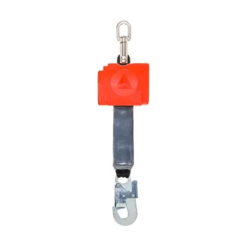 A Trava Queda Retrátil Minibloc Delta Plus é equipada com uma fita de 2,5 metros, absorvedor de energia e curso de retorno automático, oferecendo segurança e praticidade para trabalhos em altura.